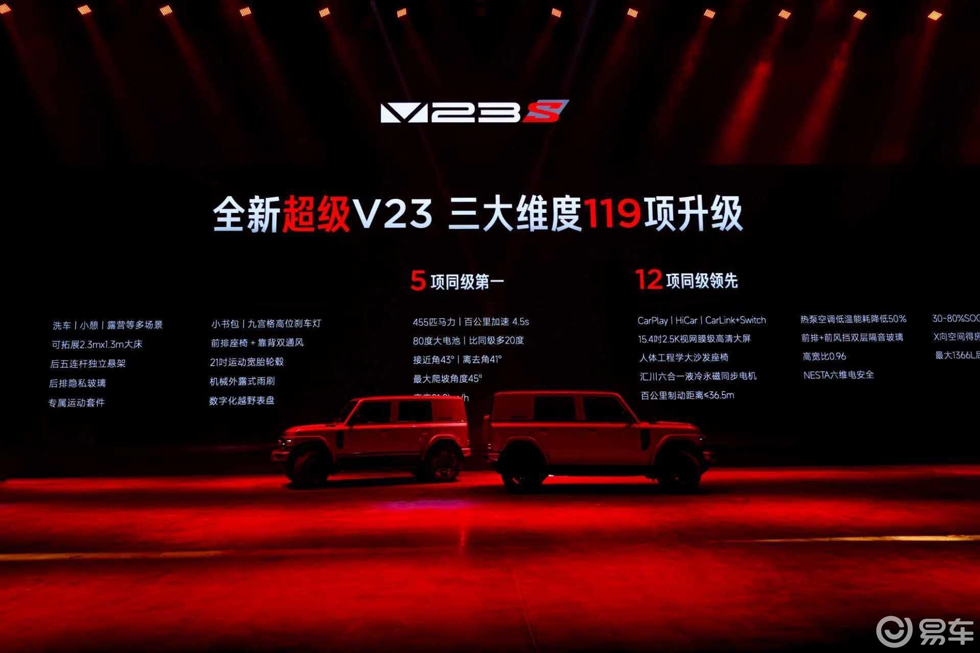 V23自上市以来,凭借自身独特风格和准确定位,成为2025年1-8月新能源方盒子累计销量冠军。全新超级V23更进一步,在性能、操控、越野方面有更大的提升。