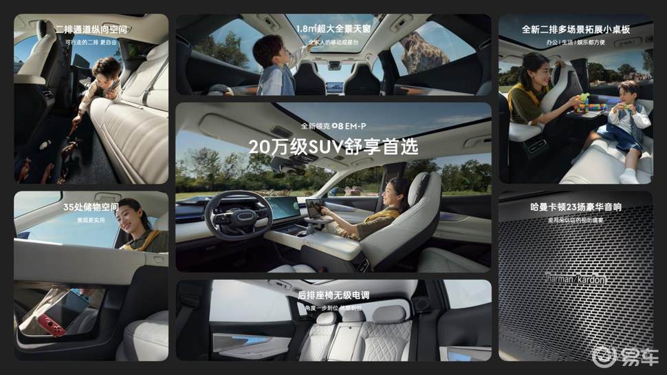每一次出行全家都能尽享同级最震撼的视听体验。全新领克08 EM-P采用哈曼卡顿23扬豪华音响,应用7.1.4.2全新布局,天空声道4个扬声器布局优化和7段调音,使得低音更稳、中音更准、高音更甜,结合超越豪车的NVH静谧性,完美还原百万级3D环绕式沉浸音效体验。