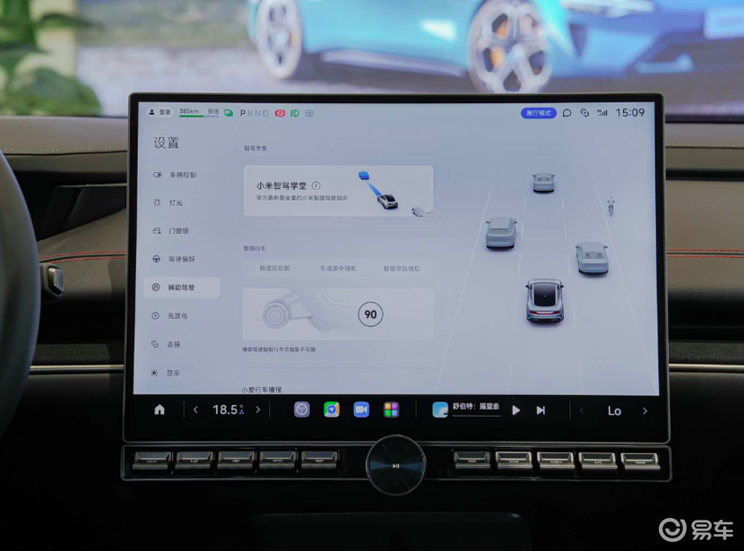小米SU7走的是生态互联路线,主打“生态联动+盲操友好”。配备16.1英寸3K中控屏+7.1英寸翻转仪表,可惜缺失了HUD抬头显示。搭载澎湃OS系统,核心算力同样是骁龙8295芯片,保留了空调温度、风量等常用物理旋钮,方便行车中进行盲操。搭载小爱同学语音助手,可以实现车-小米手机/平板/手表/智能家居无缝互联,对米粉们很友好。
