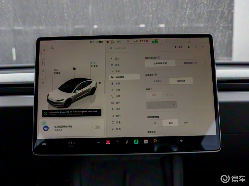 Model 3走的是极简路线,主打“极简大屏+精简布局”。车内仅配备一块15.4英寸悬浮中控屏,没有配备传统仪表和HUD,核心行车信息集成在中控屏左侧,后排有一块8英寸娱乐屏,尺寸有点小,好在屏幕分辨率较高且不易留指纹。算力由 AMD Ryzen 芯片支撑,流畅度不错,语音助手仅支持基础指令,无法连续对话,大部分操作都依赖中控屏,换挡、调节灯光等都需要在屏幕操作或依赖方向盘按键,新手需要一定适应期。