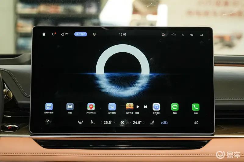 新车配备了大尺寸的中控屏,并首次应用了华为鸿蒙座舱。主驾的仪表屏也可显示多种车辆信息,新车还配备有人脸识别、抬头显示、全车配备多个扬声器。由于采用了怀挡设计,中控台下方还提供了无线充电面板,并保留部分快捷按键,下部还提供了巨大的储物空间。