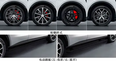 侧身轮廓偏硬朗,采用半隐藏式门把手设计和花瓣样式的轮毂造型。提供20英寸和21英寸两种尺寸,前后轮毂都采用了红色刹车卡钳,性能感更强。尾部造型比较简洁,采用贯穿式尾灯设计,内部为璀璨星河光源,点亮后很美观。