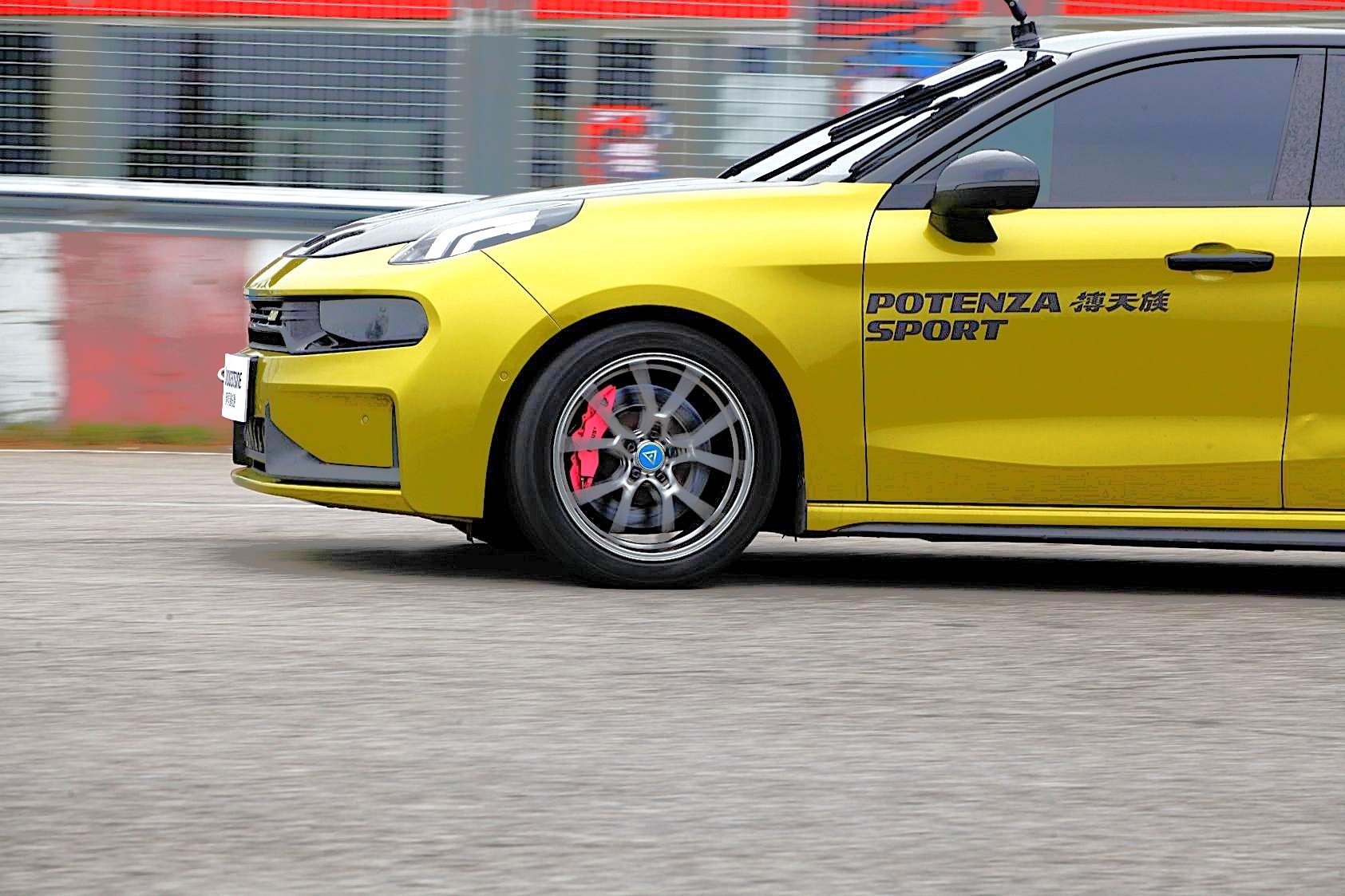 当领克03+搭配普利司通搏天族POTENZA SPORT轮胎征战赛道时,两者之间的完美契合,让车辆的性能得到了全方位的提升。领克03+搭载了一台2.0L涡轮增压发动机,最大功率可达187kW,峰值扭矩为350Nm,传动系统匹配8AT手自一体变速箱,实现0-100km/h加速时间仅为5.9s,最高车速可达250km/h,这样的动力表现完全符合入门级性能车的定位,甚至可以与部分合资品牌的高性能车型相媲美。