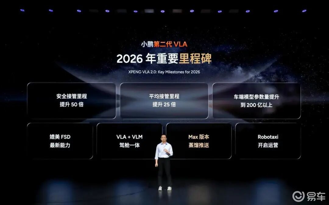 凭借强大的泛化能力,今年小鹏第二代VLA将实现多项重要「里程碑」。例如,在朝着完全辅助驾驶进化的路上,小鹏第二代VLA和VLM大模型将跨域融合,让汽车进化为能同时为用户提供主、被动能力组合的超级智能体。
