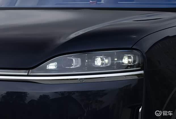 从外观来看,新车延续了家族化设计语言,车头采用星环式贯穿灯带,并融入蓝色灯光元素。其配备的新一代DLP投影大灯支持地面光影投射、迎宾光毯及转向辅助投影等功能。前格栅为贯穿式镀铬设计,内部以网状结构装饰,整体线条舒展大气。车顶前方装有896线激光雷达,进一步强化了科技感知。