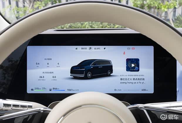 座舱内部提供绒霞紫、韶华杏与赤茶橘三种配色,并搭载鸿蒙智行4.0座舱系统。车内配备10.25英寸全液晶仪表、15.6英寸悬浮中控屏、21英寸副驾娱乐屏以及吸顶屏,结合HUAWEI SOUND卓越系列音响,支持多屏多设备无缝交互。在材质方面,车内大量使用天然实木、NAPPA头层真皮与晶钻切工水晶等高档用料,营造出细腻的质感氛围。