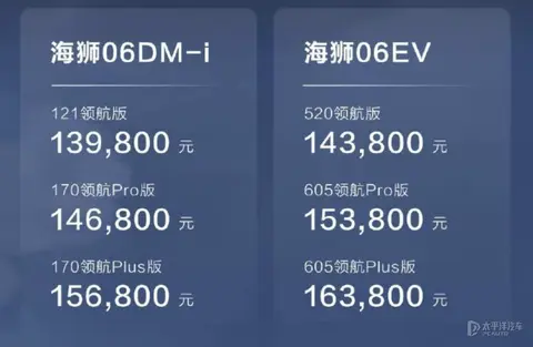 【太平洋汽车 新车频道】7月24日,比亚迪海狮06DM(图片|配置|询价)-i/EV正式上市,新车共推出6款车型,售价区间为13.98-16.38万元。作为海狮车系全新车型,海狮06DM-i(询底价|查参配)/EV定位中型纯电,其中海狮06DM-i搭载第五代DM技术,提供121km和170km两种续航可选;EV车型则基于e平台3.0Evo打造,提供520km和605km两种续航可选,同时,新车标配天神之眼 C - 智能驾驶辅助三目版(DiPilot 100),以及标配云辇-C智能阻尼车身控制系统。
