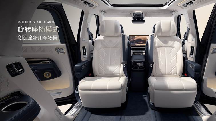 在享受舒适与健康的同时,行云座椅还支持旋转座椅模式,让极氪9X的座舱空间化身移动会客厅,营造豪华隐私空间,商务洽谈更从容。自驾出游时,极氪9X还可以变成全家人的欢聚空间,可坐可躺可旋转,撑腰按摩无短板,全家共享惬意旅途,安享每一个幸福瞬间。