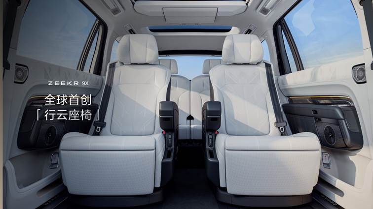 为了打造“座座皆从容”的体验,极氪9X全车座椅均采用超柔NAPPA全粒面头层真皮,并支持多角度电动调节,第三排支持最大135°躺倒与同级最大的140mm电动滑移行程。针对使用频率更高的第二排,极氪9X搭载同级规格最高的顶级行政座椅——行云座椅,完美诠释“万象从容”的内涵。