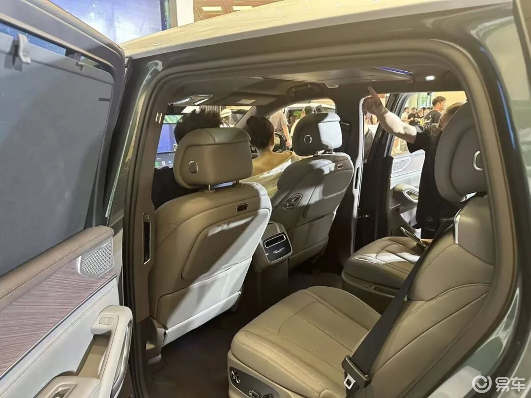 座椅采用的是2+2+2的6座布局,副驾配备了零重力女王座椅;前排和二排座椅均支持加热、通风、按摩功能,二排座椅还可以左右横向移动,并提供双小桌板、双50W无线充电、17.3英寸吸顶屏、车载冰箱;第三排提供座椅电动调节和座椅加热功能。