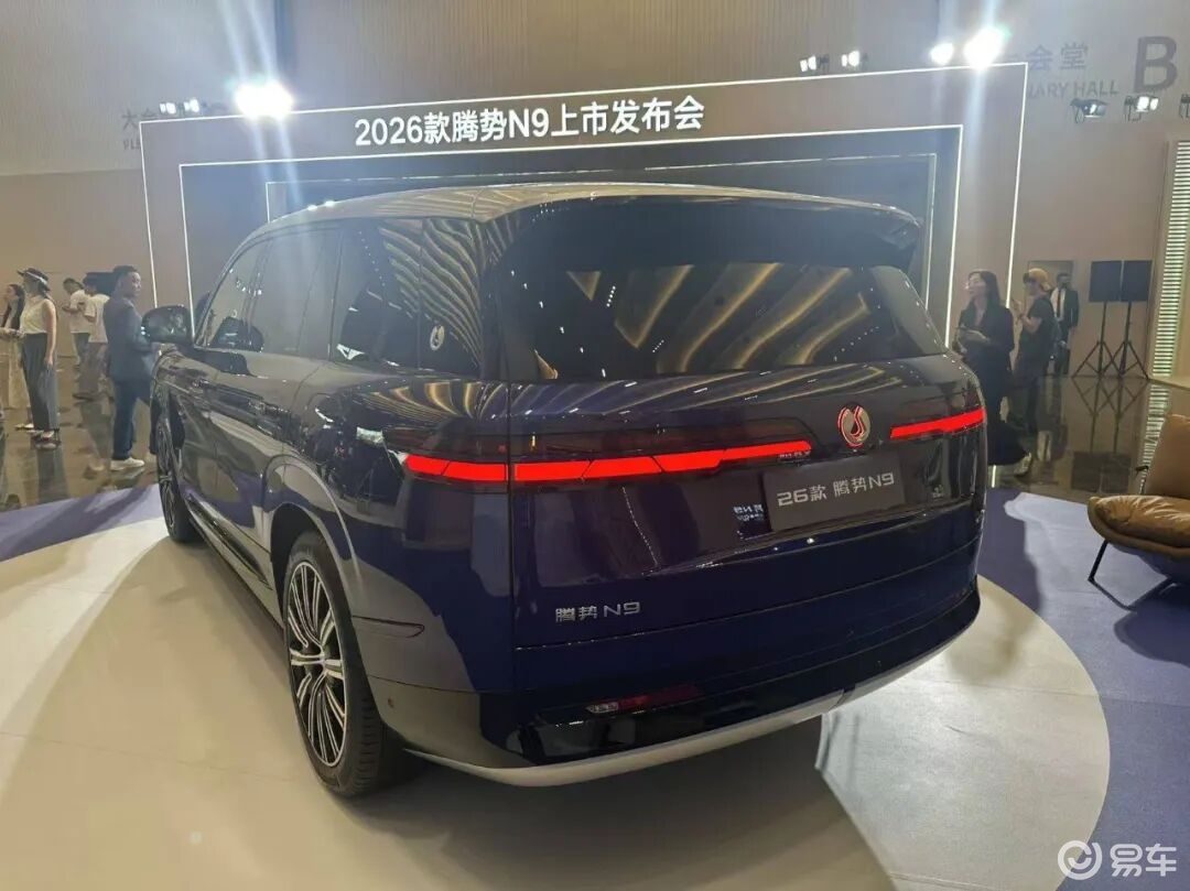 动力方面,N9搭载了热效率为44.13%的2.0T涡轮增压发动机组成的插混系统,最大功率207马力,三电机的总功率680千瓦,CLTC纯电续航202km,CLTC综合续航1302km,0-100km/h加速时间3.9秒。腾势N9还搭载易三方技术和云辇-A,具备三电机独立驱动、后轮双电机独立转向(双向20°)、VMC整车运动控制、混动CTB电池车身一体化四大核心技术,可以实现极致转向(最小半径4.65米)、圆规掉头、易三方泊车、低附路面增稳、高速爆胎稳定控制、15°智能蟹行、雨雪内八等功能。