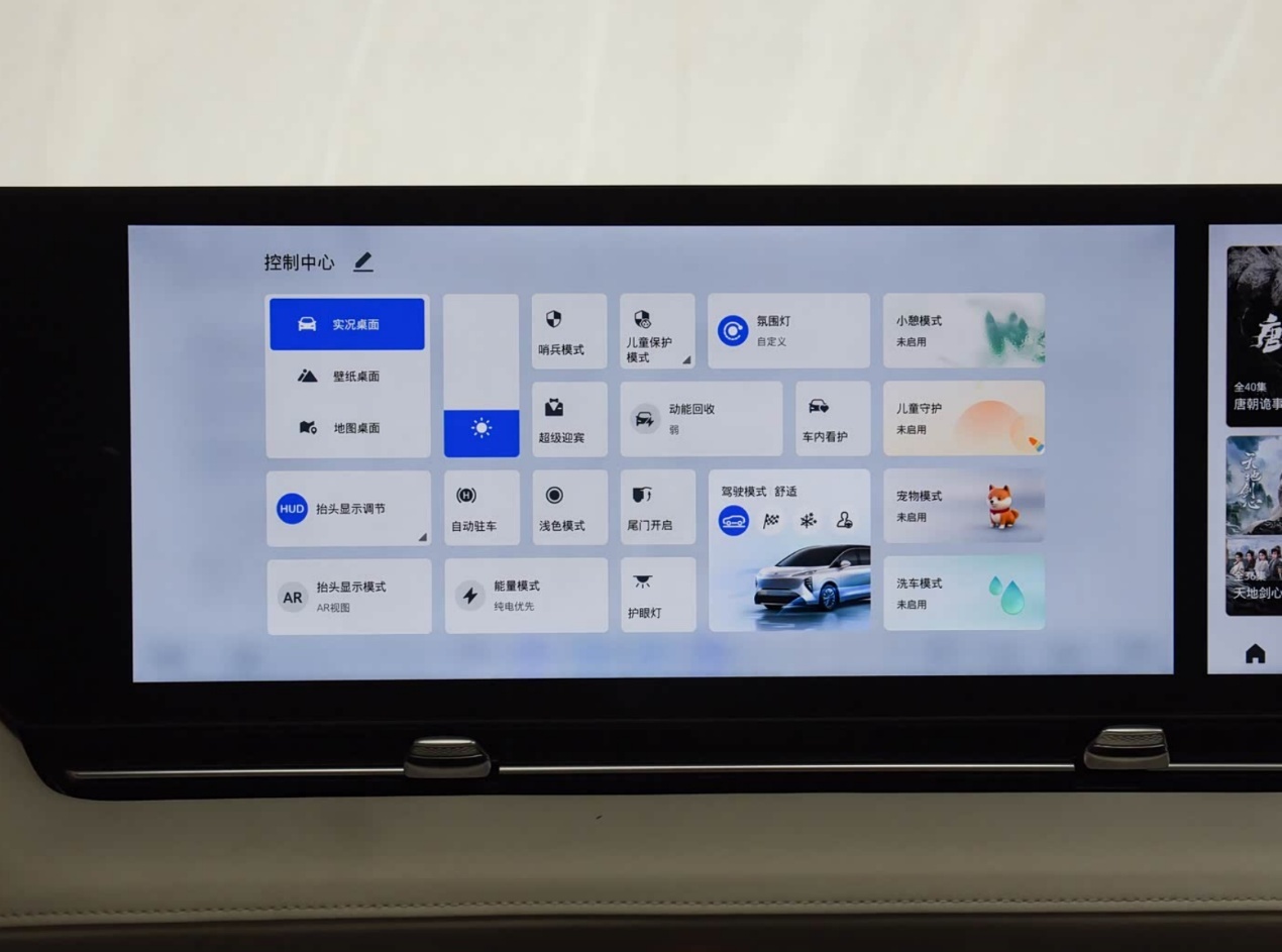 在智能化方面,世家采用是目前最新的高通SA8775P芯片,这能保障车内10.25英寸仪表屏、16.3英寸中控屏、16.3英寸副驾屏、50英寸AR-HUD和21英寸4K后舱多媒体智慧屏等,能够相互协同且流畅的运行。