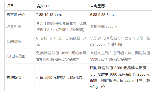 更直观地了解购买埃安UT和星愿的购车成本差异,可参考对比表格: