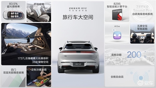 极氪007GT不仅好看好开,更是一台全能的生活伙伴。得益于2925毫米超长轴距,它拥有83.5%的超大得房率和最高1737升的后备厢拓展空间,无论是装载闺蜜的购物战利品,还是独自去郊外露营,都绰绰有余。后排一键放倒秒变大床房,副驾头枕拆卸可变单人床,搭配2160瓦的Zeekr Sound Pro音响和全场景3D车道级导航,极氪007GT就是移动的影音室和舒适区。